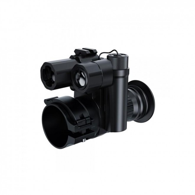 Clip on notturno e diurno ad infrarossi di nuova generazione. Telemetro laser integrato per la misurazione della distanza fino a 1097m .Piu compatto rispetto al modello precendete.Impermeabile IP67.La modalità di registrazione automatica consente di registrare gli attimi prima e dopo lo sparo in maniera autonoma.Due modalità di visione , a colori per il giorno e in bianco e nero per la notte.Versione con batteria a sinistra.